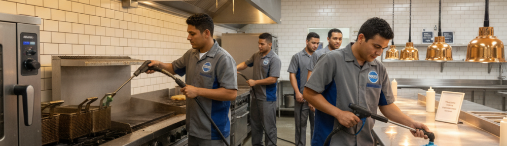 Their clients include independent restaurants, hotel kitchens, school cafeterias, and similar facilities. Their teams arrive with certified equipment and documentation to support compliance during inspections.